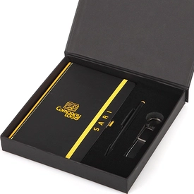 İçerik: Fesleğen 13x21 Defter, 3418 - Dokunmatik Tükenmez Kalem, 4118 - Deri-Metal Anahtarlık