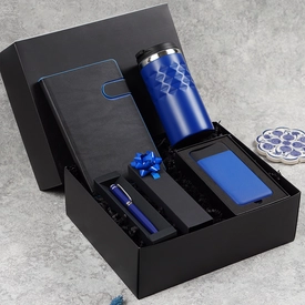 Teknoloji ve şıklığı bir araya getiren bu hediye seti; powerbank, roller kalem, defter ve termos içeriğiyle ofis hayatını kolaylaştıran fonksiyonel bir kurumsal hediye seçeneğidir.
